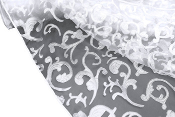 Biała cienka organza ze wzorem oraz z wszytą ołowianką firanka dekoracyjna na metry wzór na organtynie wys. 280 cm