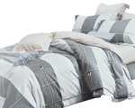 Pościel bawełniana w szerokie niebieskie, ecru i grafitowe pasy 3-cz. poszwa 160x200 cm + 2 x poszewki 70x80 cm