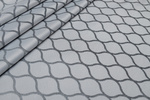 Szara dekoracyjna tkanina obrusowa ze wzorem w kratkę z wplecioną srebrną nitką wys. 170 cm