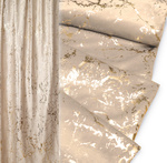 Tkanina dekoracyjna zasłonowa miła w dotyku z lekkim meszkiem na strukturze plastra miodu 280 cm. wys. beżowa w złote ciapki