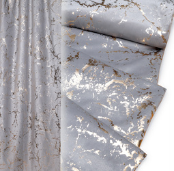 Tkanina dekoracyjna zasłonowa miła w dotyku z lekkim meszkiem na strukturze plastra miodu 280 cm. wys. szara w złote ciapki