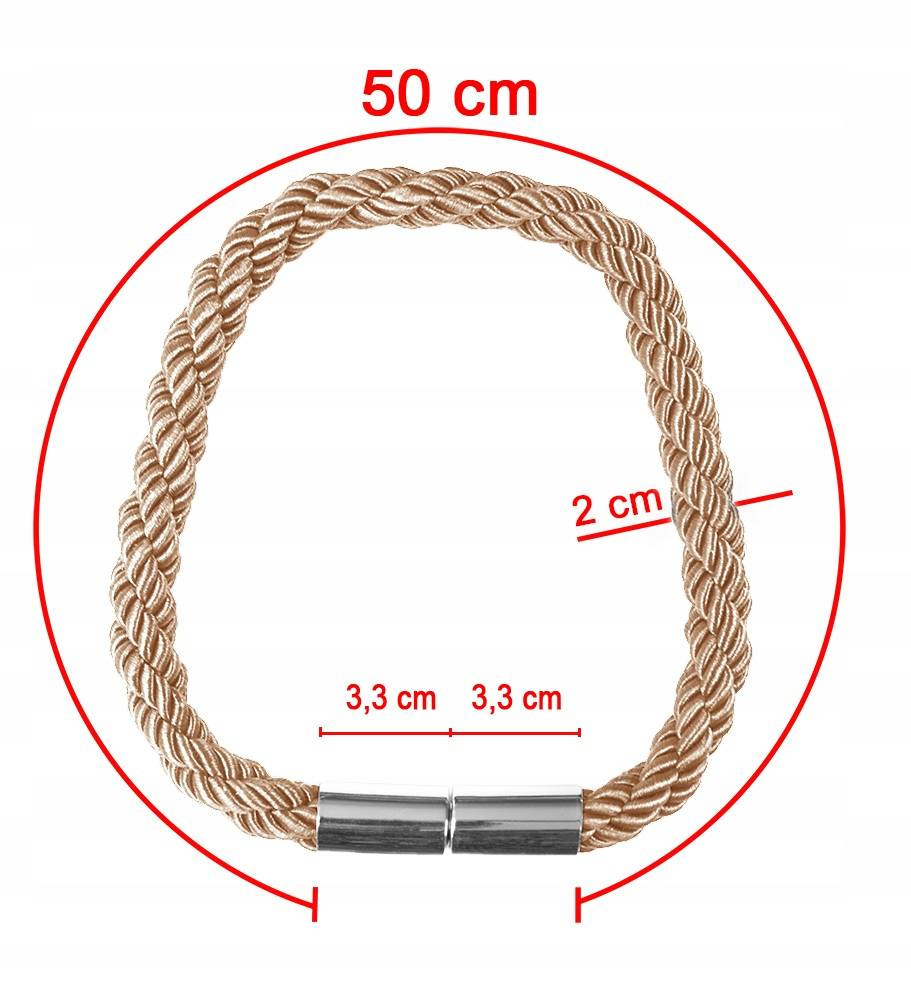 Eleganckie upięcie do zasłon wykonane z grubego efektownego sznura i mocnego magnesu to piękny dodatek do aranżacji okiennych. Ten niewielki dekoracyjny detal urozmaici i upiększy wygląd każdej tkaniny. Klamra idealnie nadają się do upinania i drapowania firan, zasłon, makaronów oraz innych tkanin dekoracyjnych. Posiada magnes, dzięki któremu nie zsuwa się z firan. Upinacz składa się z dwóch metalowych końcówek, zawierających zamaskowane magnesy, które połączone ozdobnie plecionym grubym sznurkiem, gwarantują mocny uchwyt zasłony w wybranym miejscu. Klamrę łatwo można owinąć wokół zasłony, przewiązać według uznania i pomysłu a także podpiąć lekko drapowany bok zasłony, tworząc w ten sposób ciekawe kompozycje.